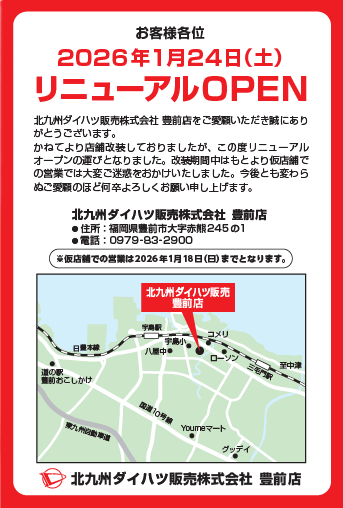 豊前店新店舗 2026年1月24日リニューアルオープン予定!